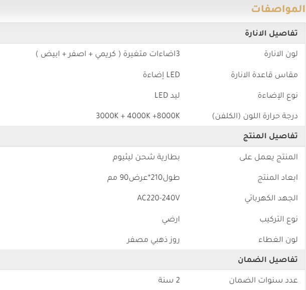 - | 3 أوضاع إضاءة | يمكن للمستخدمين اختيار الإضاءة المناسبة وفقًا لاحتياجاتهم وتفضيلاتهم الشخصية. |