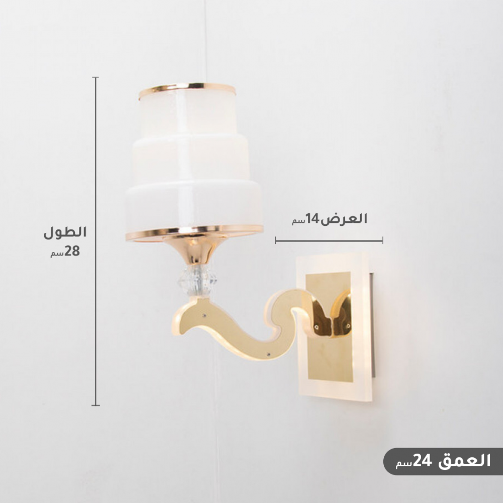 - إنارة كلاسيك جدارية بقاعدة ذهبي عالية الجودة لتقاوم الصدأ والأتربة، مع قمع زجاجي مميز بألوان ملكية رائعة؛ ليصنع ديكورات راقية تناسب ذوقك.
