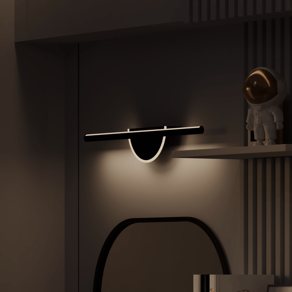 إضاءة جدارية بالبطارية خطية مع نصف دائرة اسود