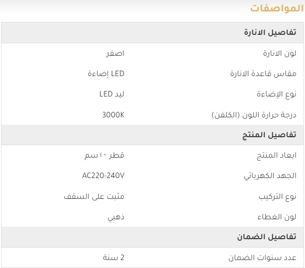 وصف منتج ثريا ليد على شكل حلقه لون زيتي اضاءه اصفر
