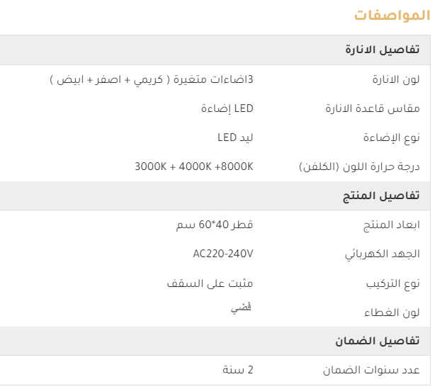 - إضاءة فعالة: تأتي الثريا مع ثلاث إنارات تعمل بتقنية LED، مما يوفر إضاءة قوية وتوفير في استهلاك الطاقة.