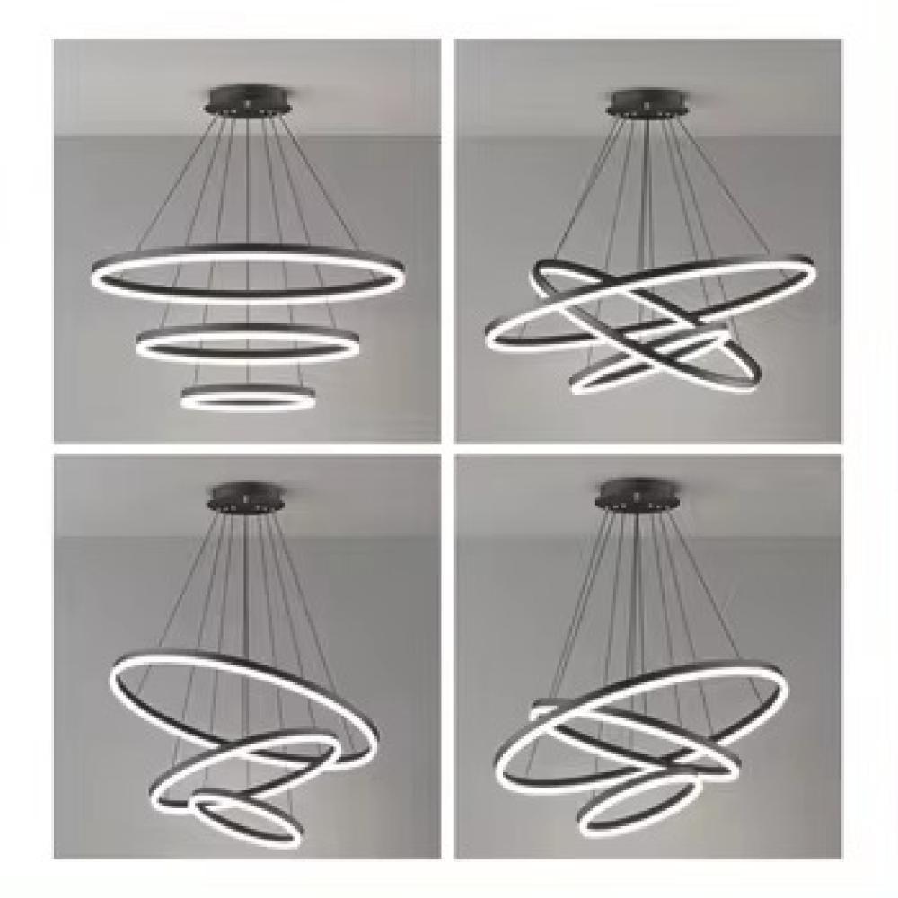 وصف منتج ثريا ليد مودرن 3حلقات اسود مع 3 اضاءات