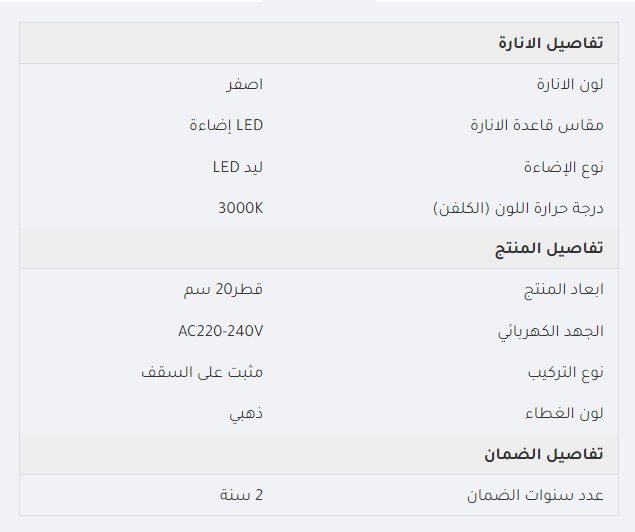 وصف المنتج: نجف مودرن ذهبي اضاءه اصفر