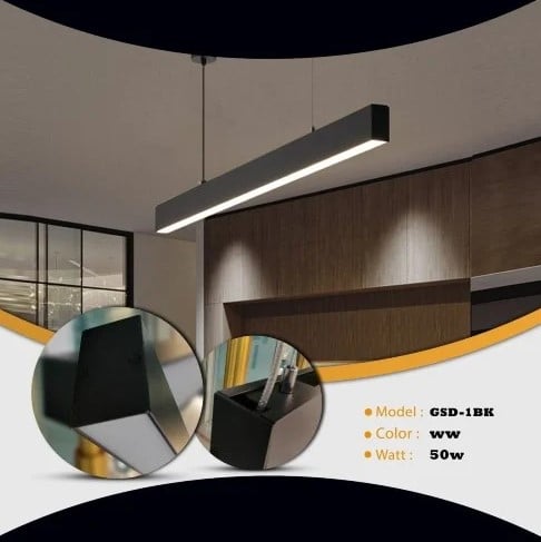 ويُضفي لمسة عصرية ومودرن على المكان بتكنولوجيا LED مزود بتقنية ليد فعّالة في استهلاك الطاقة وطويلة الأمد، ويتم تعليق المصباح بأسلاك من السقف بشكل جذاب وأنيق.