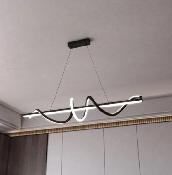 وتعد ثريا ليد مودرن اسود مع 3 اضاءات مقاس 100سم مثالية لعشاق الديكور العصري والمبتكر فهي على شكل خط مستقيم وحوله خط منحني.