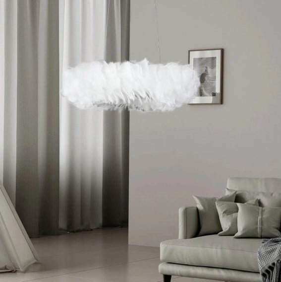 نجف مودرن ريش ابيض من أفضل أشكال ثريات غرف نوم مودرن بتصميم الريش الأبيض طابعًا فريدًا ومميزًا على الديكور، مما يجعله قطعة محورية في أي غرفة، لإضاءة جيدة ومتوازنة، تساعد في إضاءة الغرفة بشكل مريح وفعال.